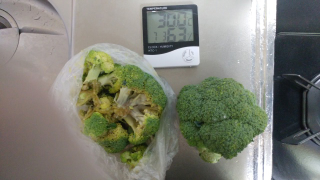 | ブロッコリー | ![]() 常温保存4日目 左:ブランクPE袋 / 右:トゥルーフレッシュ |