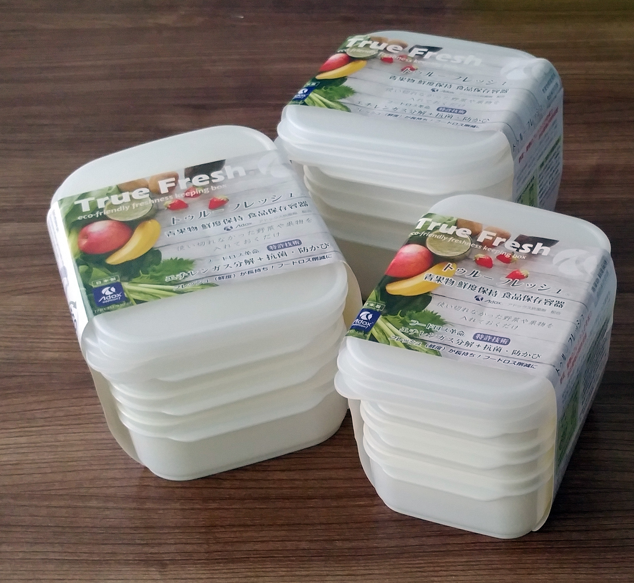True Fresh / 食洗機について 食器洗浄乾燥機の使用はフタを取って、本体のみでご利用ください 食洗機のご使用について:容器本体は耐熱温度内です。フタ・鮮度保持袋は耐熱温度外ですので手洗いしてください。 トゥルーフレッシュ 青果物 保存容器シリーズ 青果物 保存容器 エチレンガス分解と防カビで鮮度を保つ。使いきれなかった野菜や果物を新鮮保存で食品ロスを削減。ノベルティやOEMにも最適。 トゥルーフレッシュ 3サイズx3個 特別セット サイズS:590mL x 3個、サイズM:930mL x 3個、サイズL:1.04L x 3個 メーカー希望小売価格:11,800円(税込) << 前のページに戻る